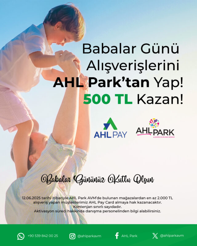 💙12.06.2025 tarihi itibariyle AHL Park AVM mağazalarından en az 2.000 TL alışveriş yapan ziyaretçilerimize 500 TL yüklü AHL Pay Kart hediye!