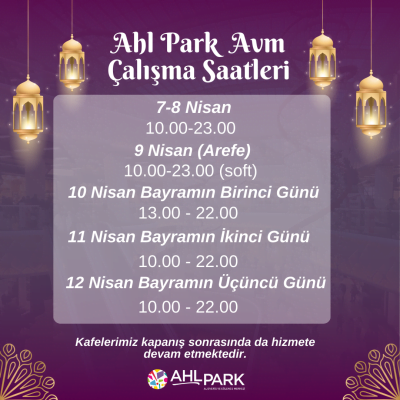Siz değerli ziyaretçilerimiz AHL Park AVM’de daha rahat bayram alışverişi yapabilsin diye saatlerimizi düzenledik ⏰ [...]