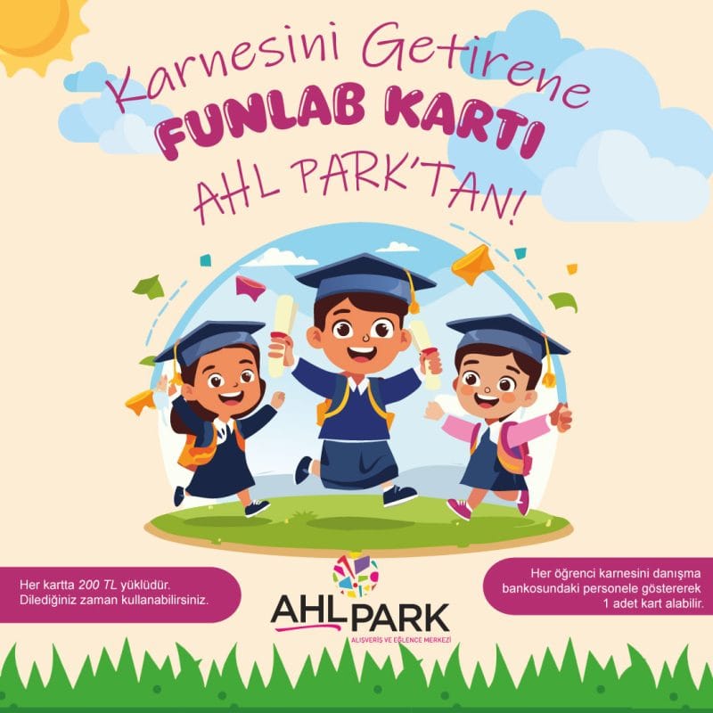 📚Karnesini getiren tüm minik ziyaretçilerimize içerisinde 200 TL yüklü olan FunLab kartı AHL Park’tan hediye!
